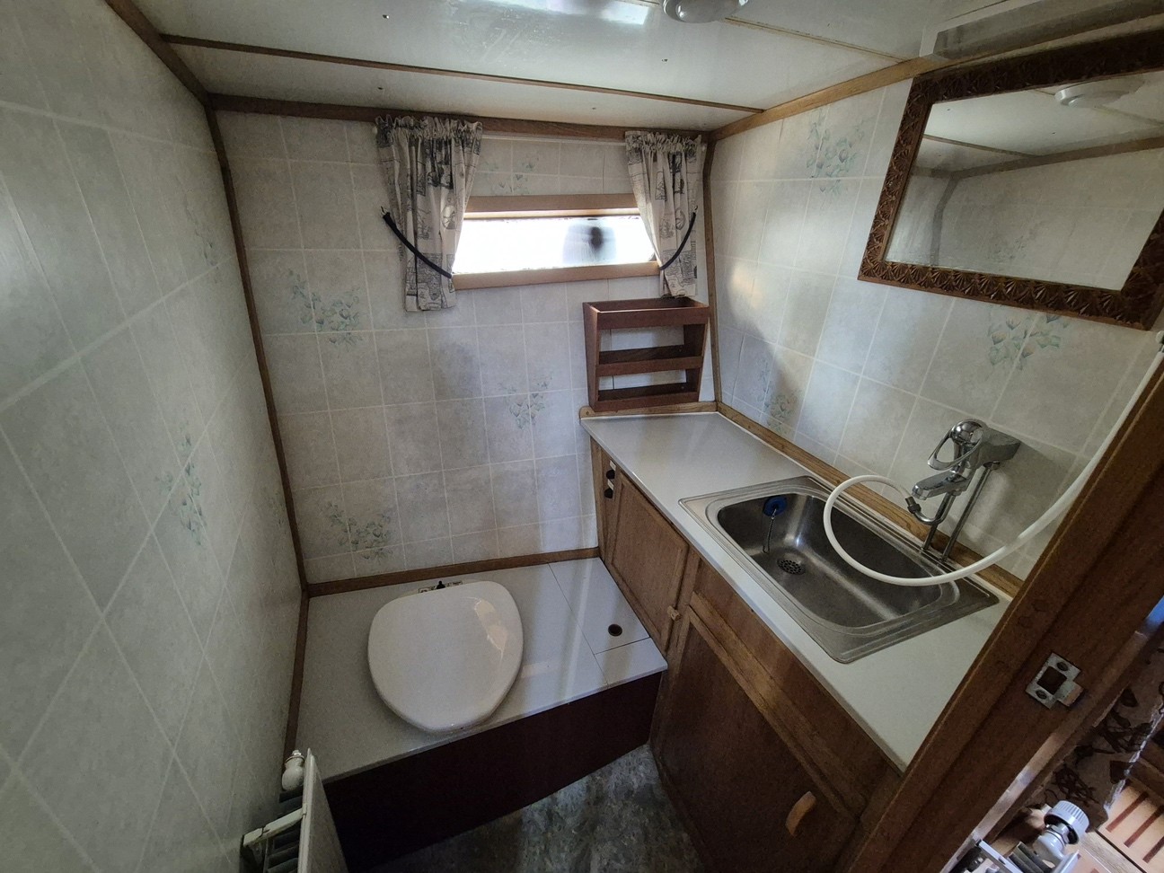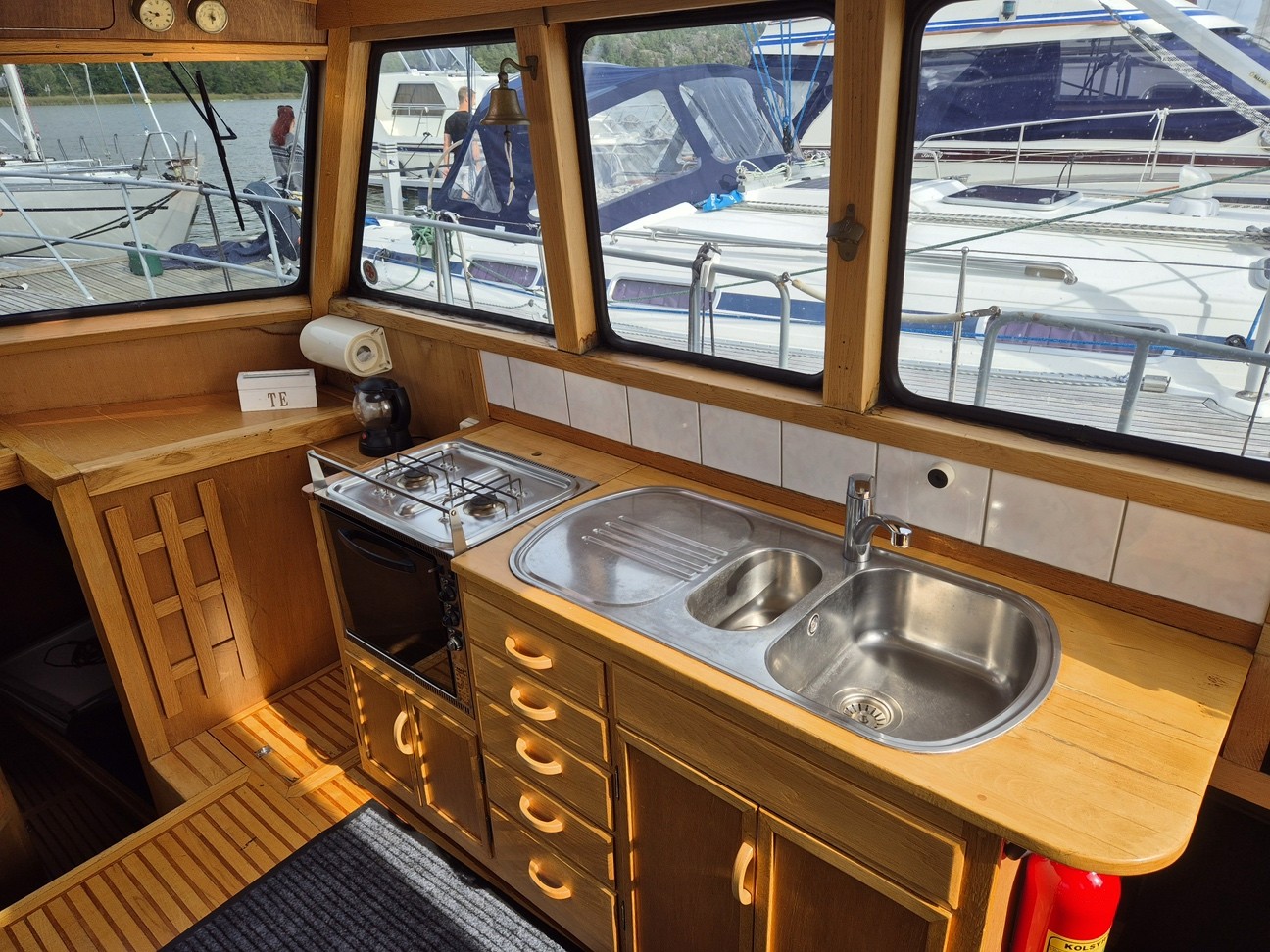 Tryckvattensystem med diskho, tvättställ i toalett och akterkabin