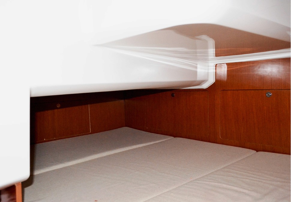 Teakdurk i sittbrunn och bäddmadrasser