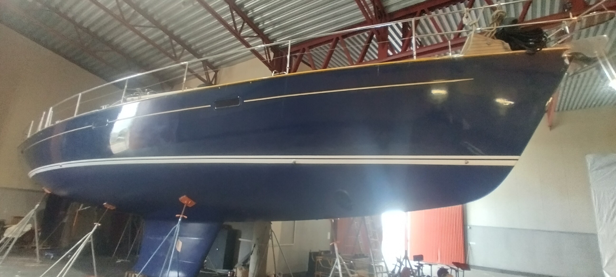 Båten står i hall i Trelleborg, är nyligen bottenmålad och redo för sjösättning. Skicket är genomgående mycket fint och båten upplevs väldigt välskött. Dynor är i nyskick och seglen är i princip oanvända. All utrustning är väl omhändertagen och båten är fullt utrustad för bekvämt liv ombord året runt.